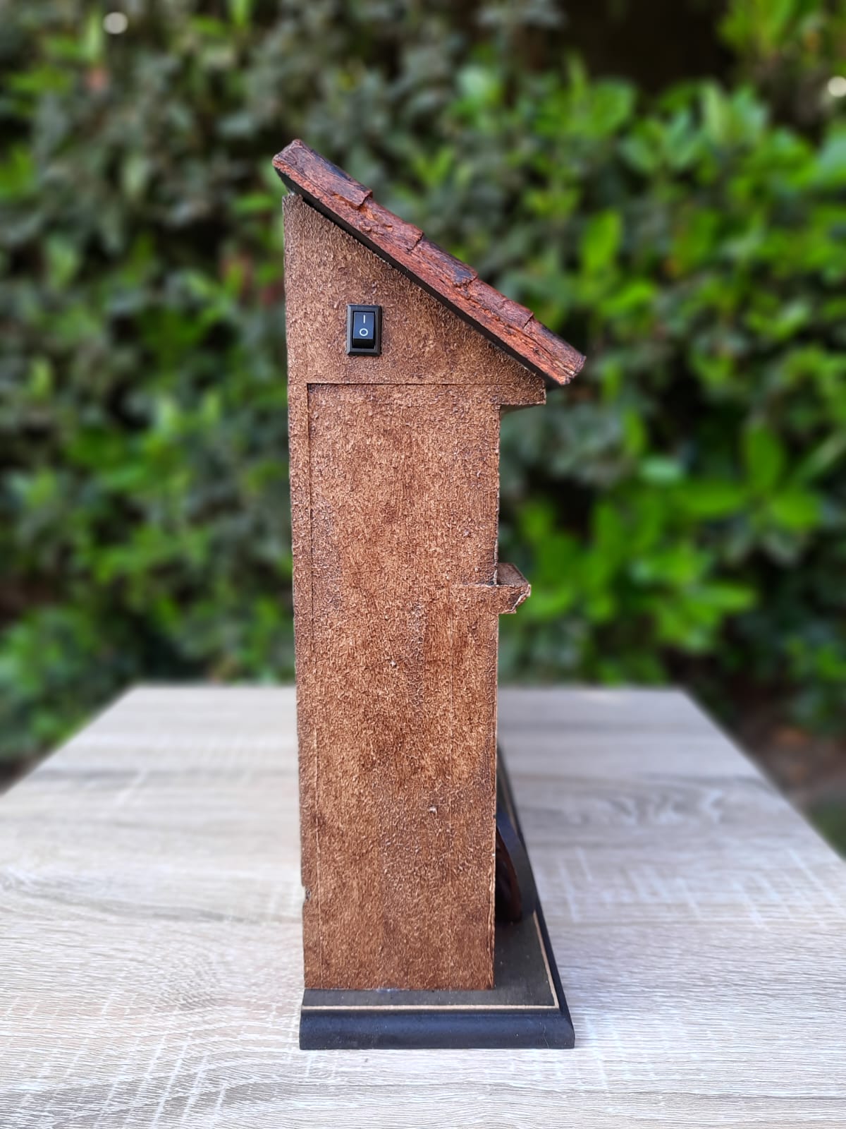 Este impresionante retablo no solo captura la esencia de una clásica cava de vinos, ¡sino que además incluye un toque mágico con su iluminación! Las luces realzan los detalles minuciosos, desde las botellas cuidadosamente dispuestas hasta los barriles y herramientas artesanales. Con su techo de tejas y sus cálidos tonos, esta pieza crea una atmósfera acogedora y auténtica.